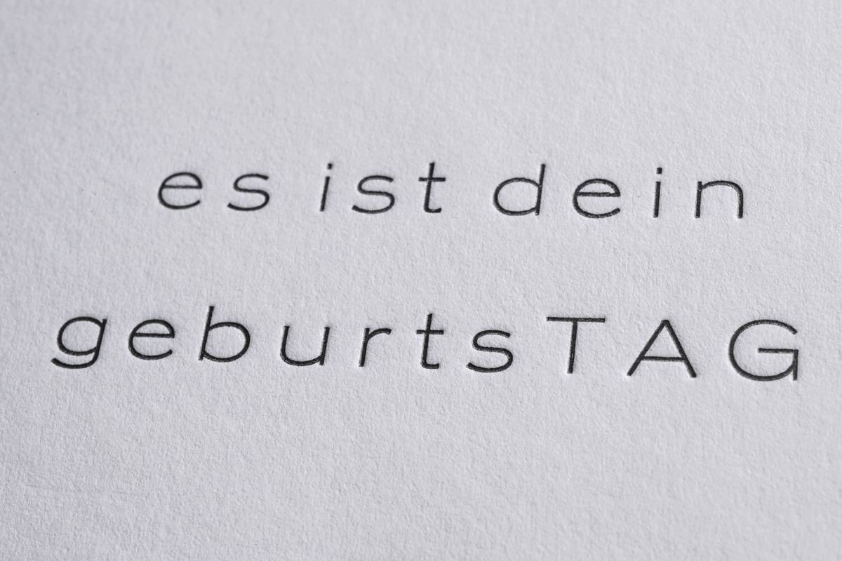 Es ist dein geburtsTAG – Unsere neuen Geburtstagskarten entstanden dieses Mal am Boston-Handtiegel und feiern deinen TAG. In der französischen Variante ganz reduziert, weil es das so schön auf den Punkt bringt. Gedruckt haben wir Schwarz mit Bleilettern und Blindprägung mit Holzletter auf das wunderbare Gmund Cotton max white 600 gramm aus der Papierfabrik Gmund am Tegernsee.