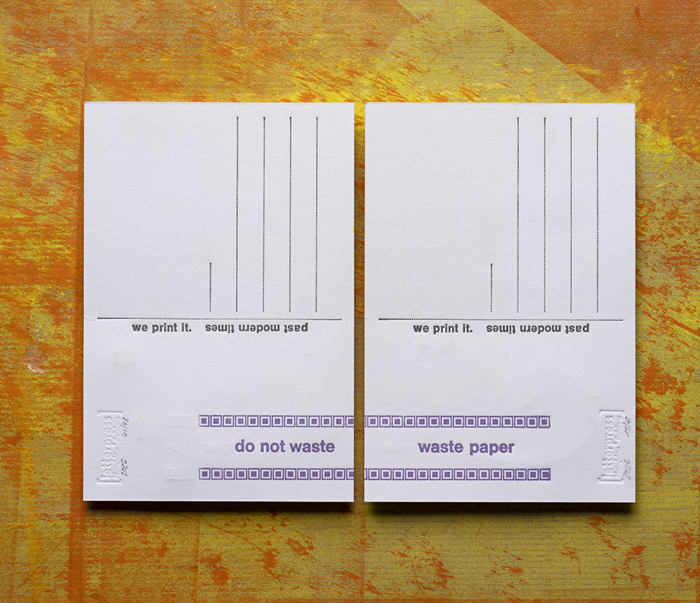 Be typing eror – Sei Tipfehler. Wir haben uns wieder mal Makulaturpapier vorgenommen, damit es nicht im Papierkorb verloren geht und eine kleine Postkarten-Edition mit 48 Stück Auflage gedruckt. Do not waste waste paper! 9 Druckschritte waren nötig, jede Karte ist einzigartig geworden und wie man sehen kann, lieben wir Buchstaben! Ein kleiner Anteil der Karten ist im Fachl Salzburg erhältlich und freut sich verschickt zu werden! Oder Ihr wendet Euch direkt an uns! Wie immer natürlich plastikfrei verpackt!!