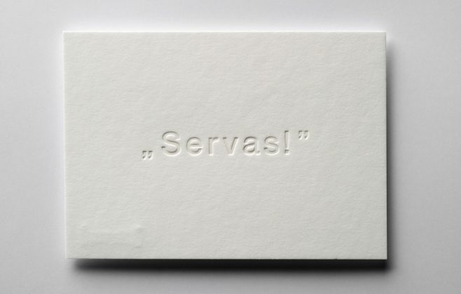 “ Servas! “ – postcard. Eine ganz und gar puristisch typographische Postkarte, die dem Dialekt frönt – “ Servas! “ ein kurz und knapper Trink-Spruch der genialen Wiener Fern... mehr dazu »