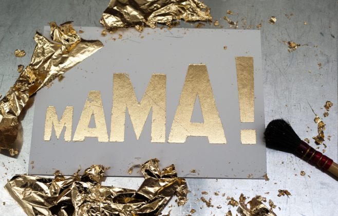 die MAMA! – Muttertags – postcard. An Muttertag kann man der Mama auch mal einfach nur eine vergoldete letterpress-postcard schenken! Wir haben 10 Stück mit Holzlettern tiefgedruckt und dann die Ve... mehr dazu »